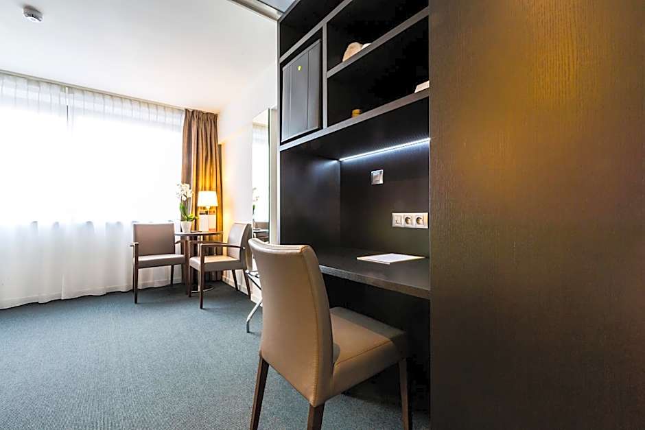 Aalst’ı keşfettikten sonra aydınlık ve çağdaş bir durak sunar. Ücretsiz Wi‑Fi ve klima her şeyi konforlu tutarken, şık bir bar ve güneşle ısınmış bir teras rahat akşamlara davet eder. 24 saat açık resepsiyon, önerilerde bulunmak veya son dakika planlarına yardımcı olmak için hazırdır. Kolaylık açısından özel otopark ve tesis içi otopark ücretli olarak mevcuttur; toplantı veya banket olanakları ek ücret karşılığında etkinliklere ev sahipliği yapabilir. Bir asansör üst katlara hizmet vererek katlar arasında sorunsuz geçiş sağlar.